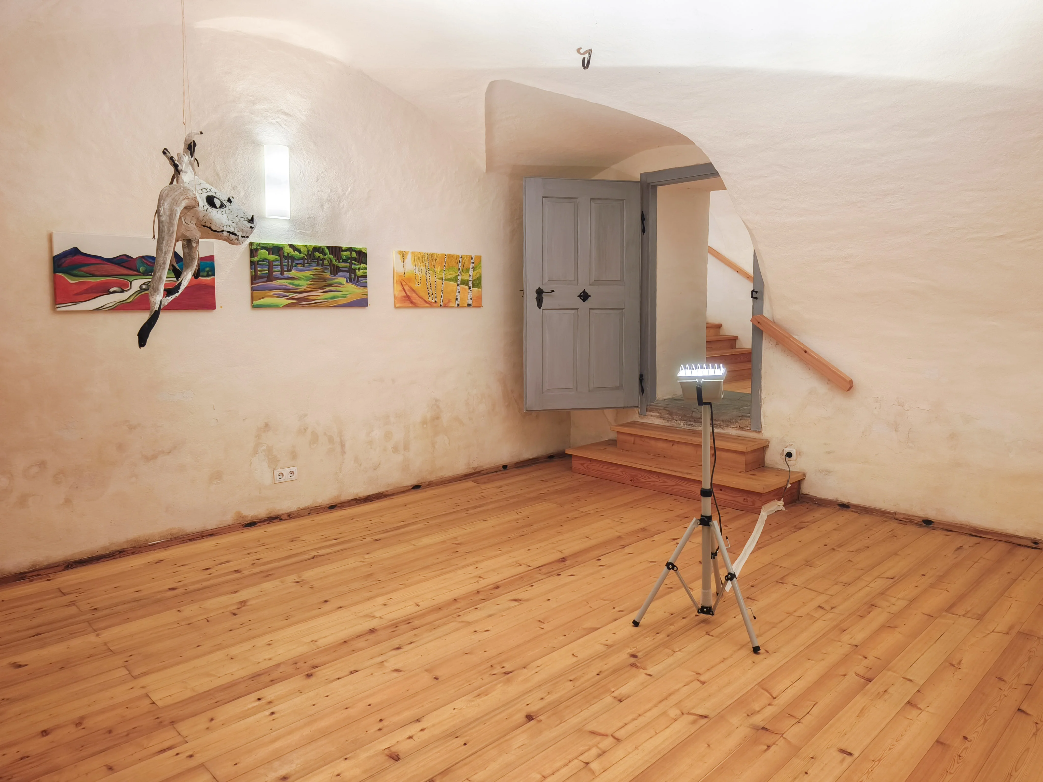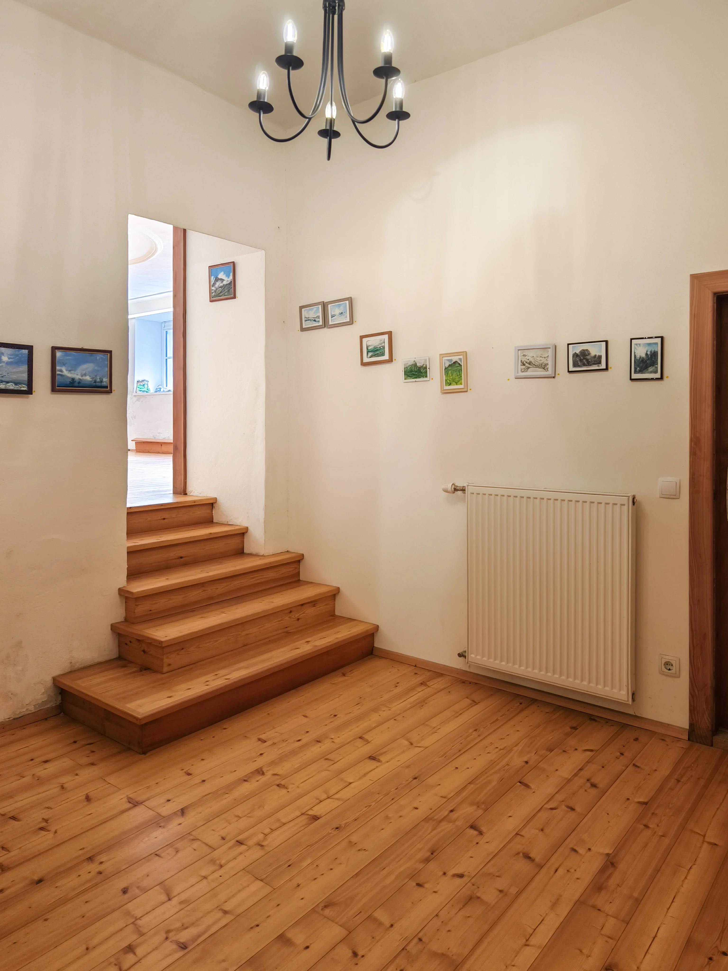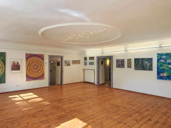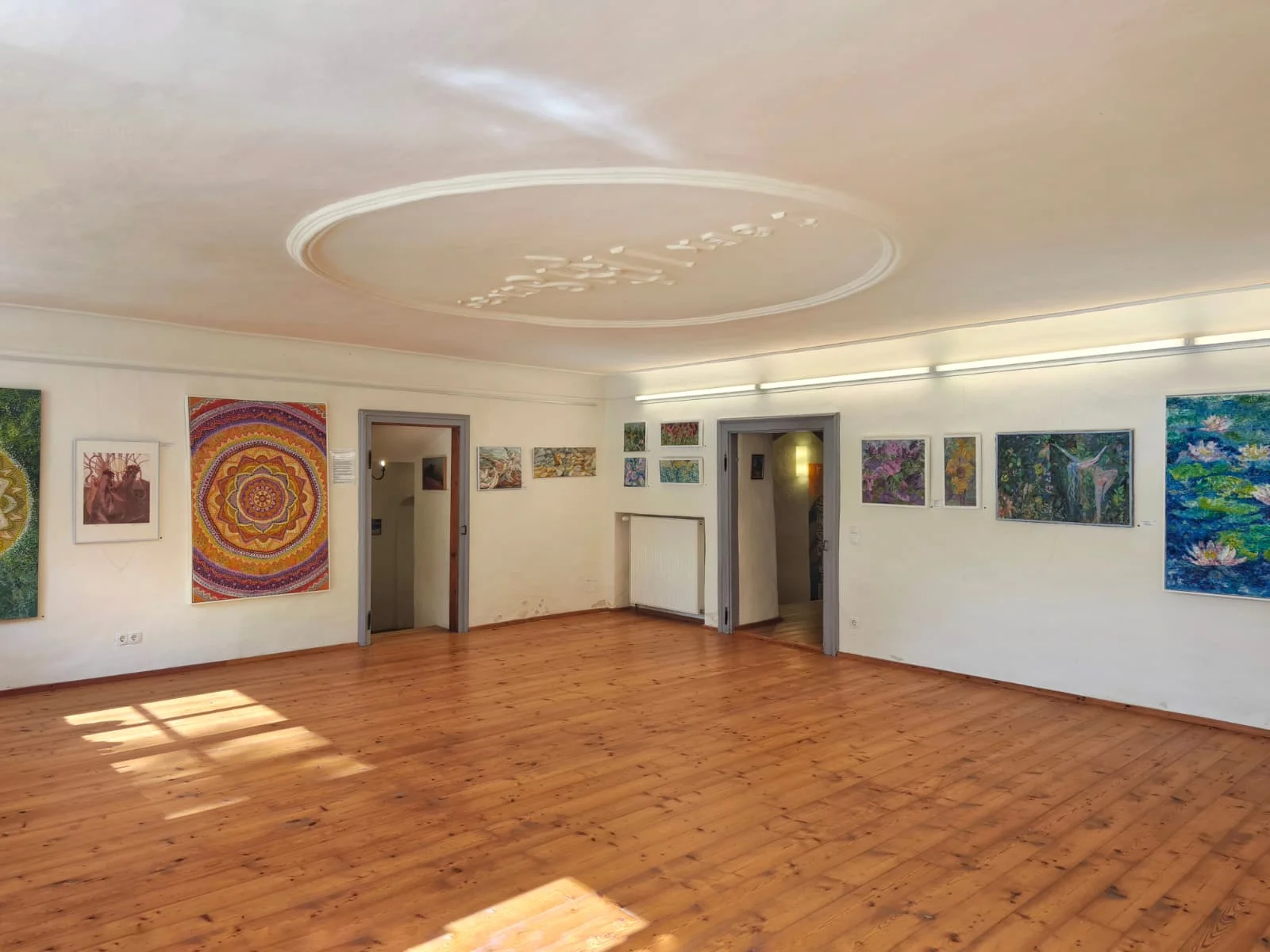 Die Fläche gliedert sich in vier Räume: Zwei große Haupträume, aktuell als Ausstellung genutzt, einen großzügigen Eingangsbereich und einen Raum mit Sanitäranlagen. Helle Räume durch zwei große Fenster im Hauptraum und die sofortige Nutzbarkeit machen das Objekt flexibel für unterschiedliche Geschäftsmodelle – ob Galerie, Laden oder für sonstige kreative Nutzungen.