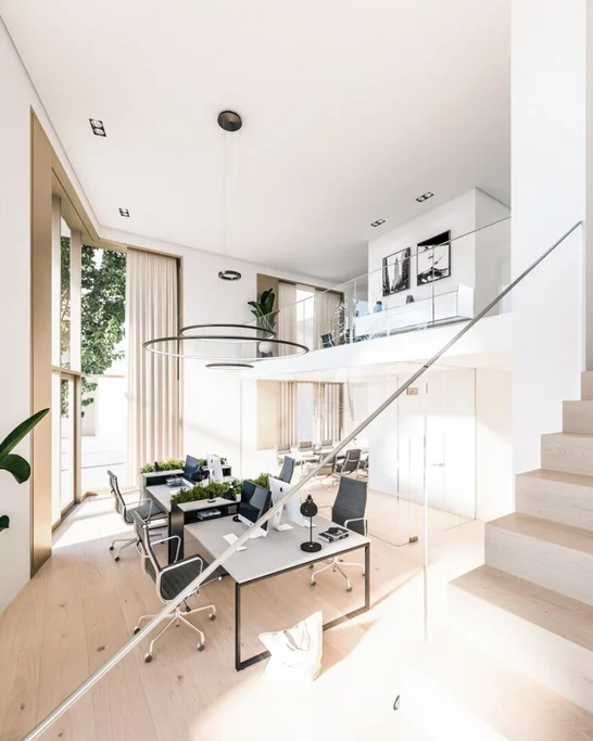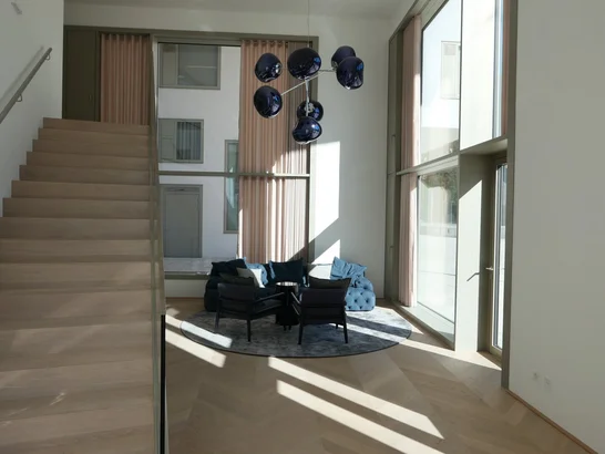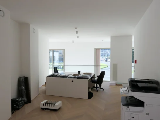 Ausstattung: u.a. Repräsentative Raumhöhen bis zu 5,5 m und großzügige, offen gestaltete Bereiche prägen das Raumgefühl. Fußbodenheizung und die kontrollierte Raumlüftung sorgen für ein ideales Raumklima. Sämtliche Fläche werden im Edelrohbau übergeben und können je nach Bedarf ausgebaut werden. Die beispielhafte Einrichtung und Ausstattungen der Visualisierungen sind nicht Bestandteil der Vermietung.