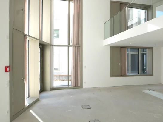 Ausstattung: u.a. Raumhöhen bis zu 5,5 m, Fußbodenheizung und die kontrollierte Raumlüftung sorgen für ein ideales Raumklima. Ausgenommen von der Verlegung vom Bodenbelag ist die Mieteinheit bezugsfertig und kann dem Mieter zeitnahe übergeben werden. Die beispielhafte Einrichtung und Ausstattungen der Visualisierungen sind nicht Bestandteil der Vermietung.