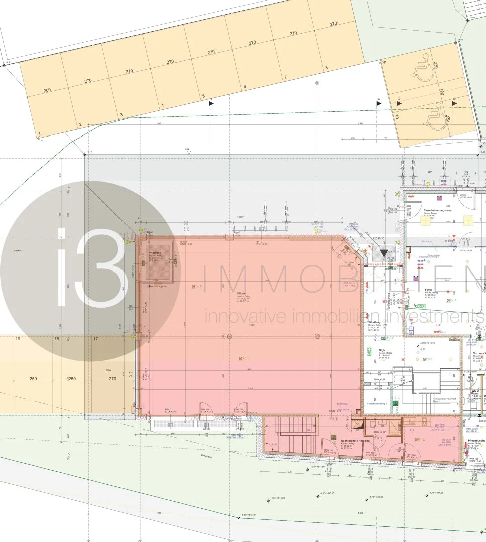 Das Geschäftslokal bietet einen repräsentativen Eingangsbereich, guter Werbemöglichkeit im Außenbereich sowie ausreichend Parkmöglichkeiten. Viele natürliches Licht aufgrund der hohen Decken und großer Fensterfront tragen zur optimalen Präsentation von Handelswaren aller Art bei.