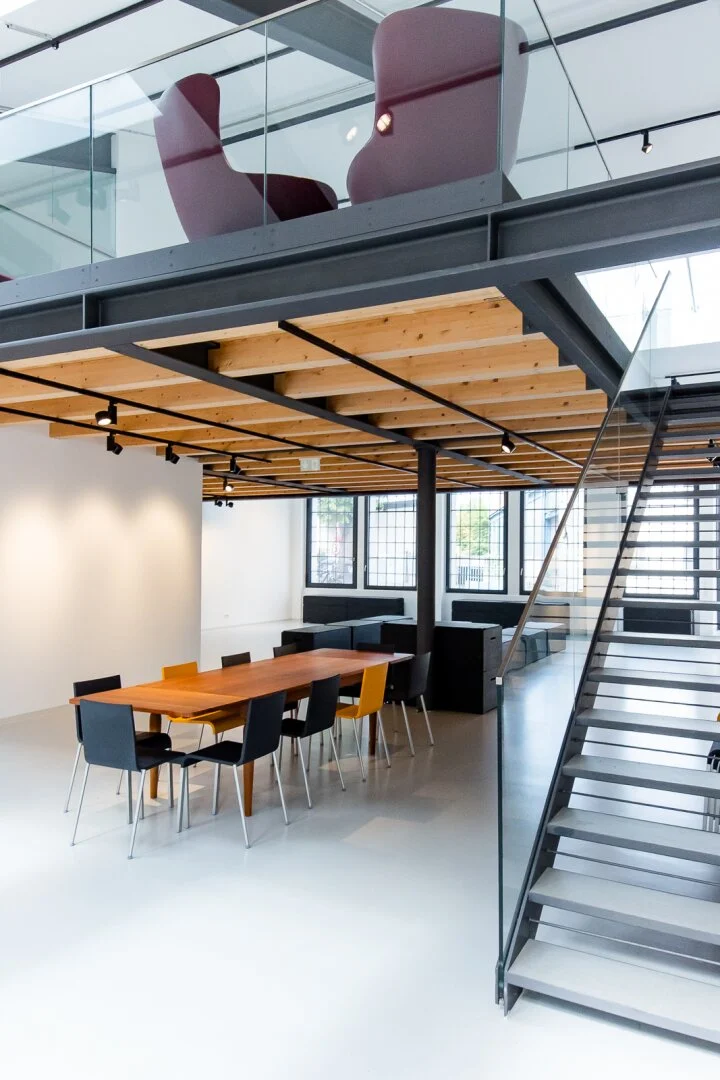 Als schwebende Galerie ausgeführt eignet sich das obere Geschoss ideal für offene Bürobereiche oder kollaborative Arbeitsräume. Durch die großen Fensterfronten sowie öffenbaren Dachflächenfenster entsteht eine bemerkenswerte und lichtdurchflutete Arbeitsatmosphäre. Jedes Element, von den ausgewählten Materialien bis hin zur sorgfältigen Verarbeitung, zeugt von einem hohen Standard an Qualität und Ästhetik.