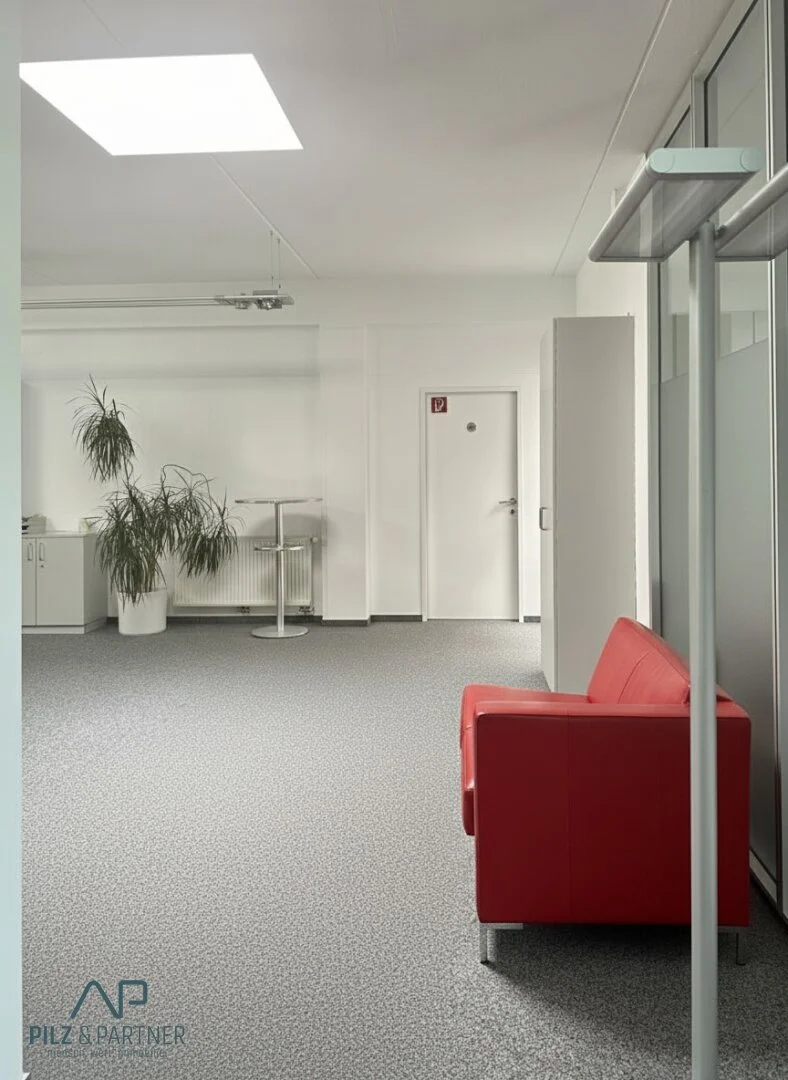 Vermietet werden Einzelräume zur ausschließlichen Nutzung mit einer Größe zwischen 17 und 28 qm oder ein Doppel-Office mit Vorzimmer und separatem Raum mit insgesamt 46 qm; wahlweise mit Teppich oder wischbarem Boden.
