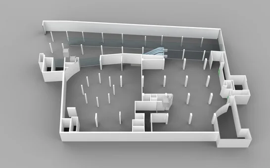 Die Fläche wurde vormals als Diskothek genutzt und bietet daher ein außergewöhnliches Raumkonzept mit weitläufigen, offenen Bereichen sowie separaten Nebenräumen.