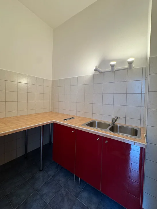 3. Abstellraum mit Wasseranschluss (bzw. kleine Küche ist ca. 5 m2 gross) und WC (ca. 1 m2 groß)