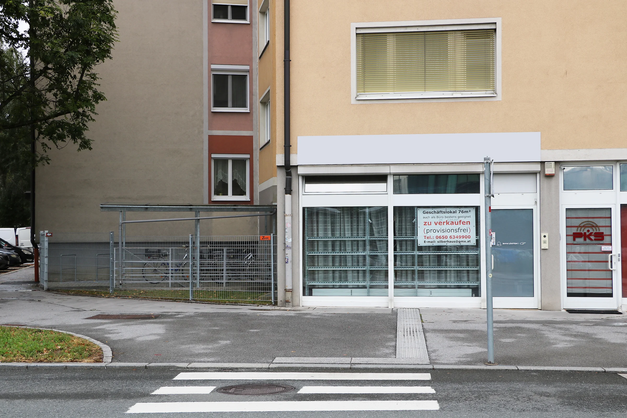 Das Geschäftslokal befindet sich im Erdgeschoss eines Wohnblocks mit insgesamt 42 Wohnungen und 3 weiteren Geschäftslokalen.