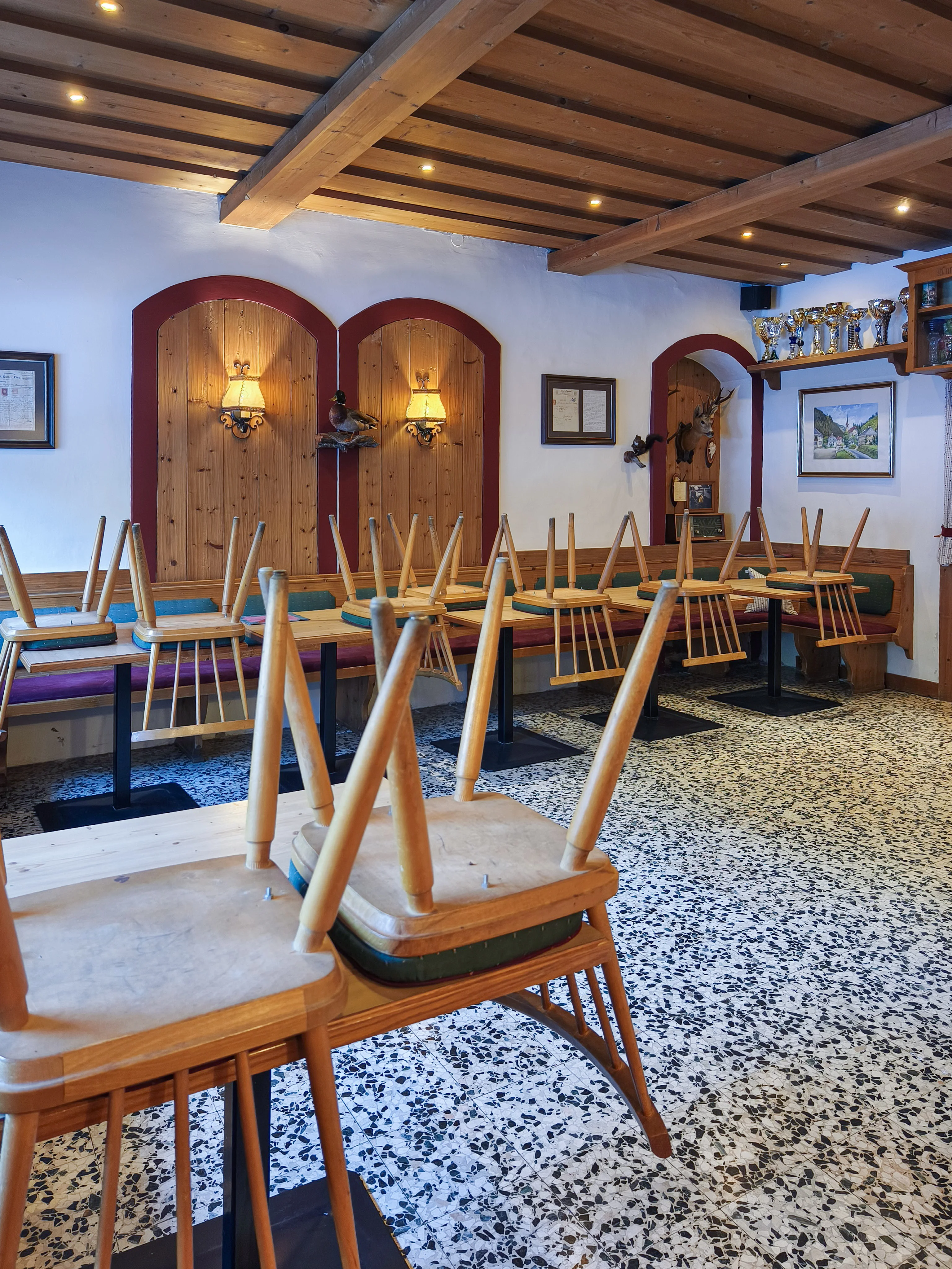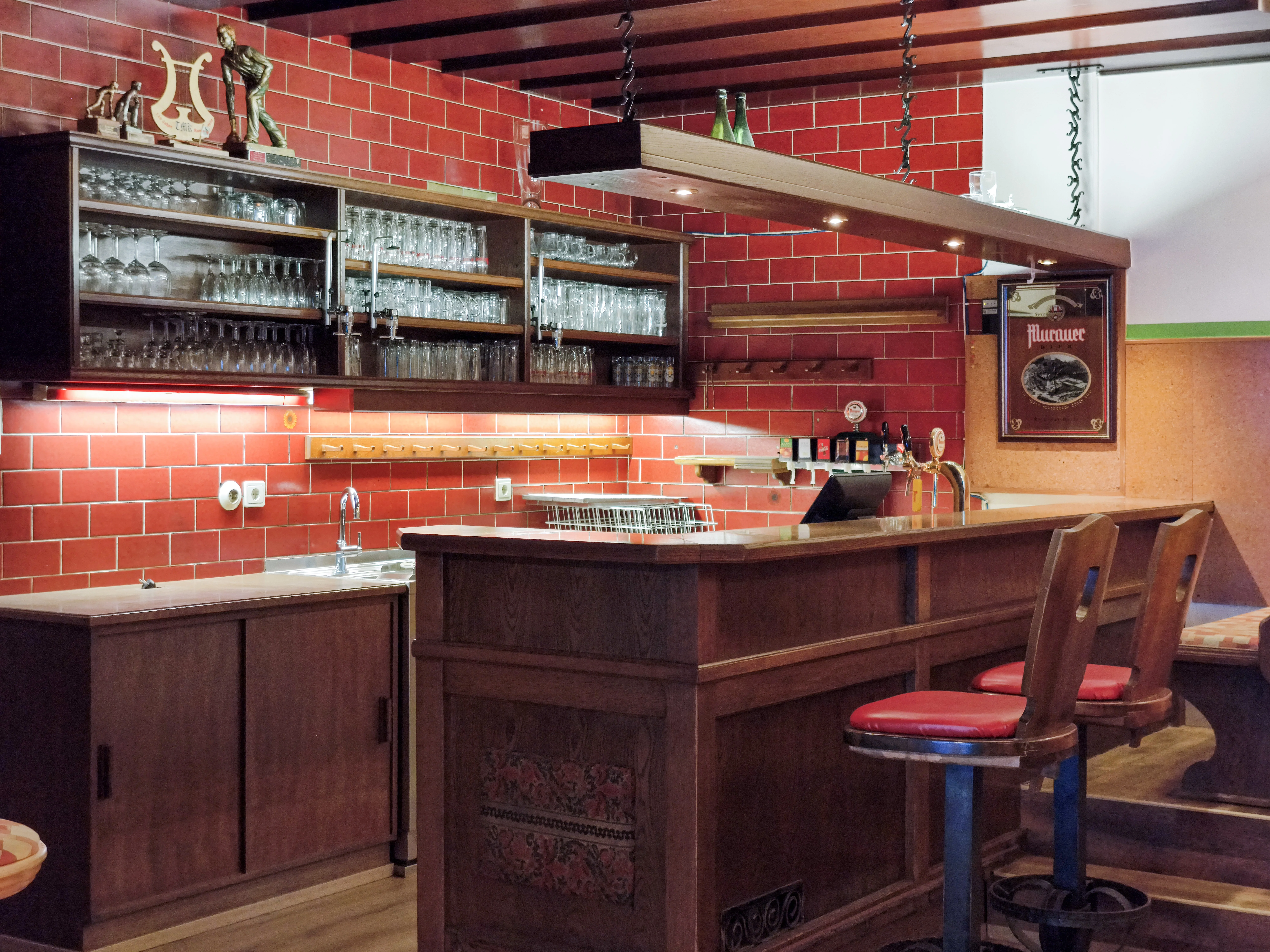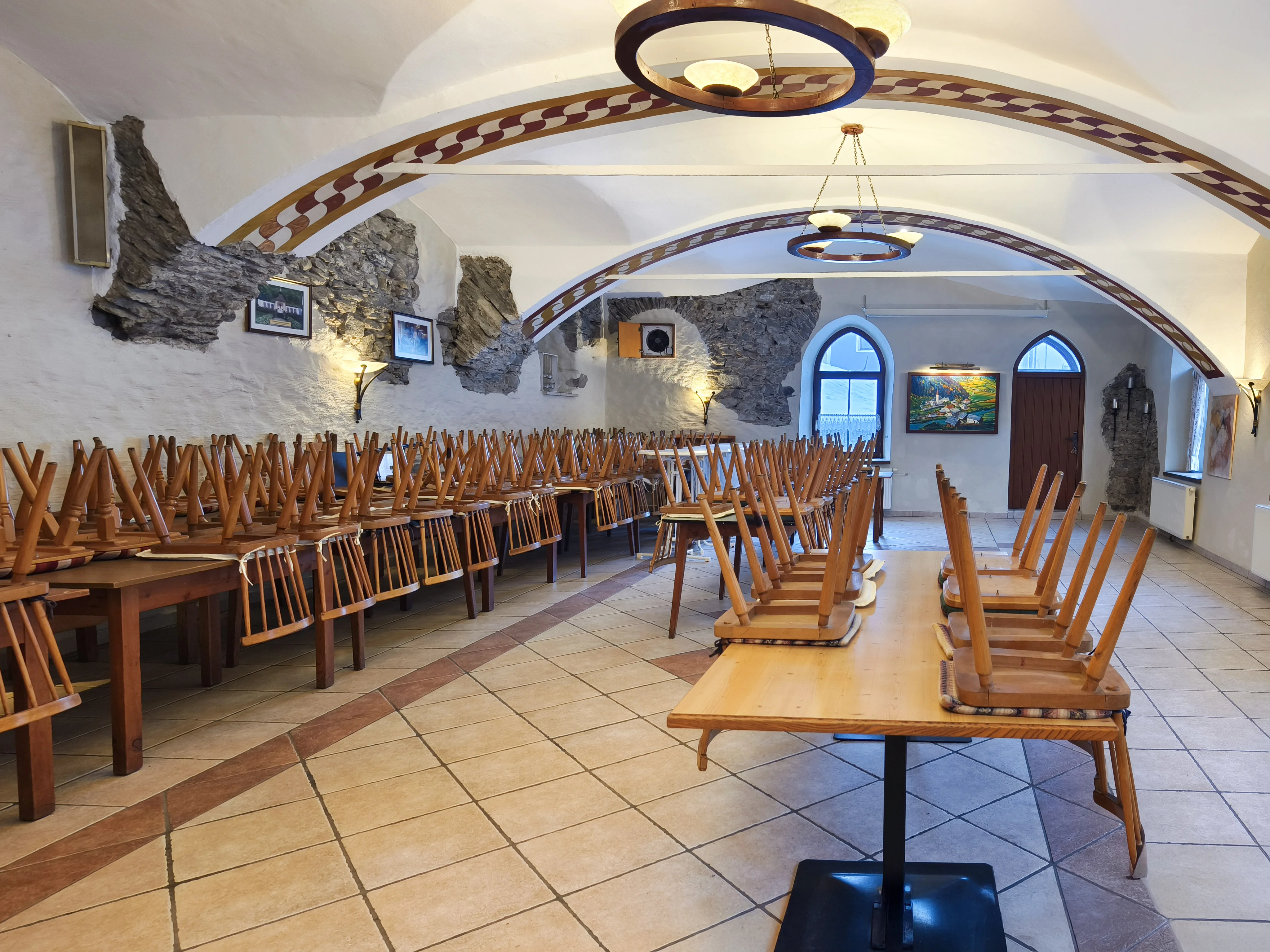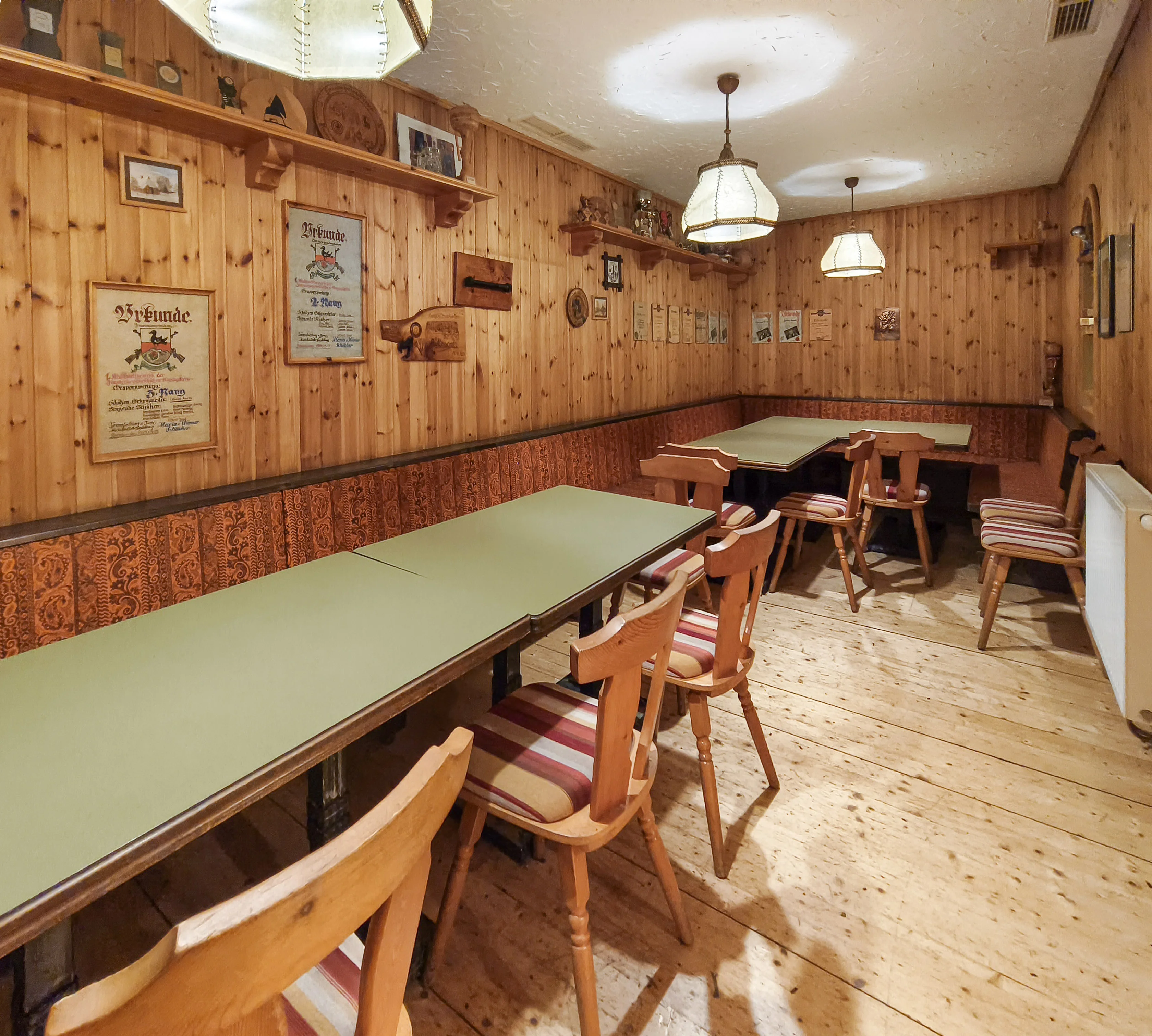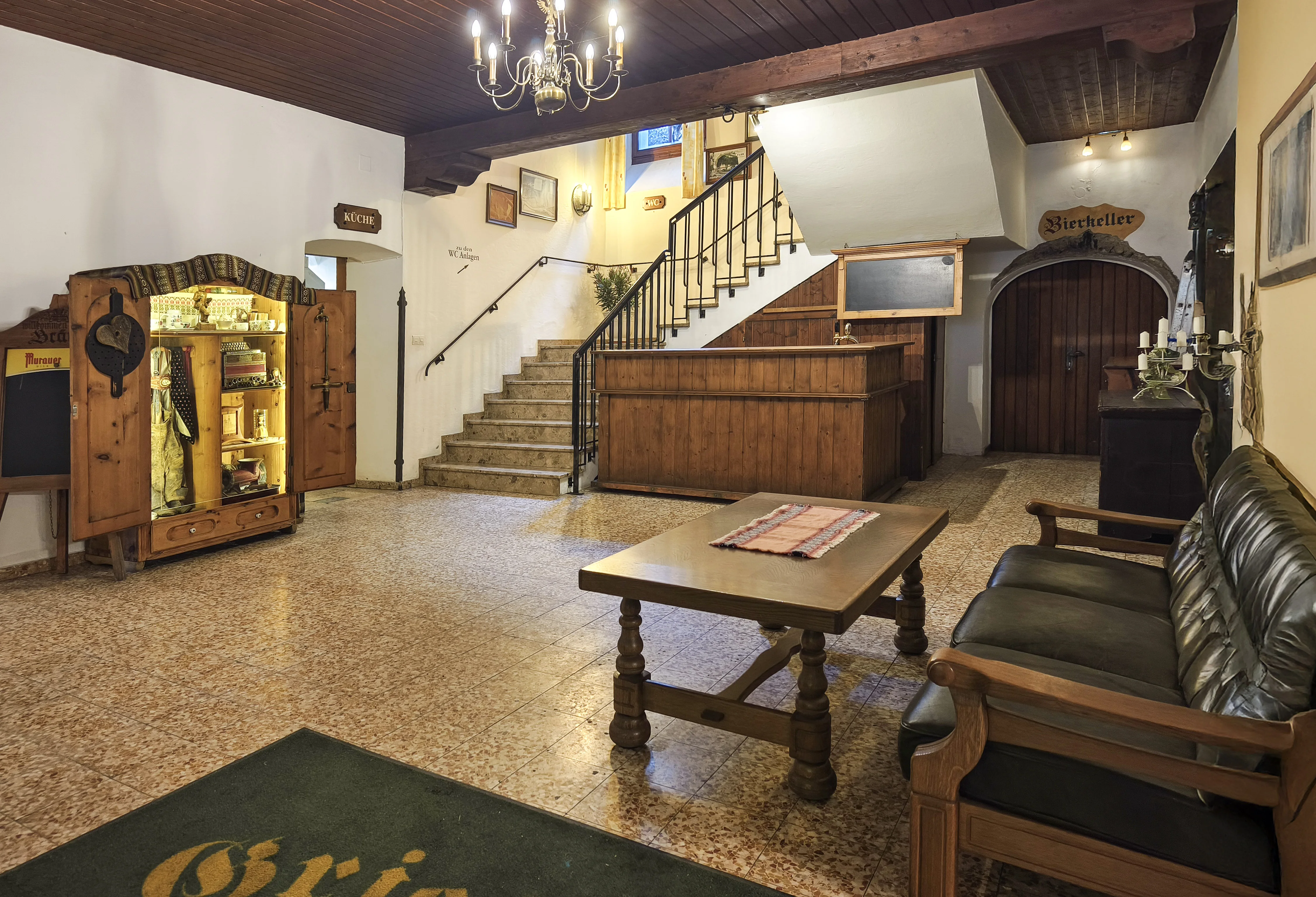 Im Erdgeschoß befinden sich ein großzügiger Saal mit hoher Sitzplatzkapazität sowie mehrere kleinere Stuben, die sich für unterschiedliche Nutzungen oder Konzepte eignen. Die vorhandene Gastronomieausstattung inklusive Küche ist vollständig erhalten, sodass ein sofortiger Einstieg in den Gastronomiebetrieb grundsätzlich möglich ist. Gleichzeitig bietet das Objekt auch Potenzial für alternative Nutzungen, da die Eigentümer offen für neue Ideen und Konzepte sind.