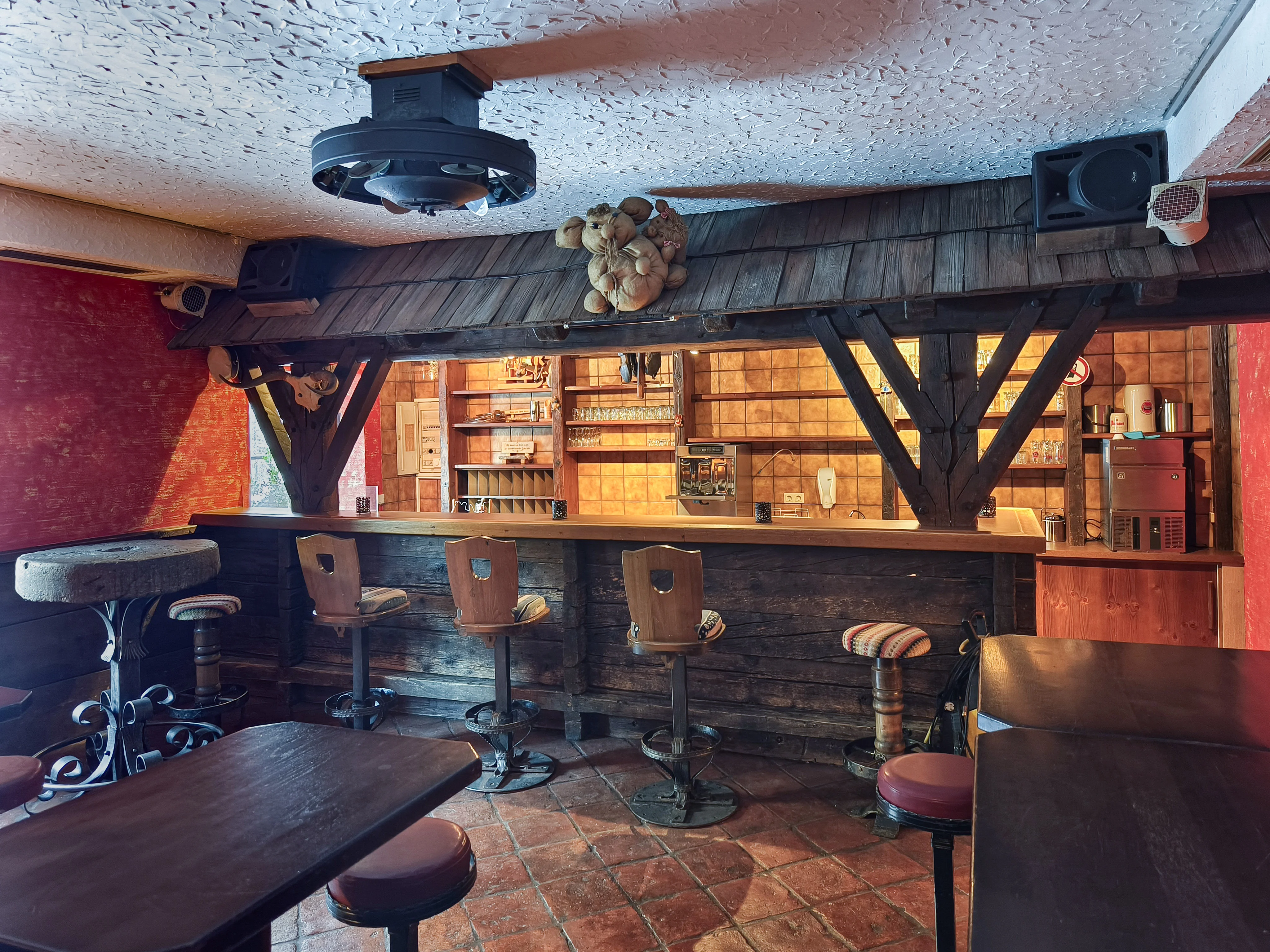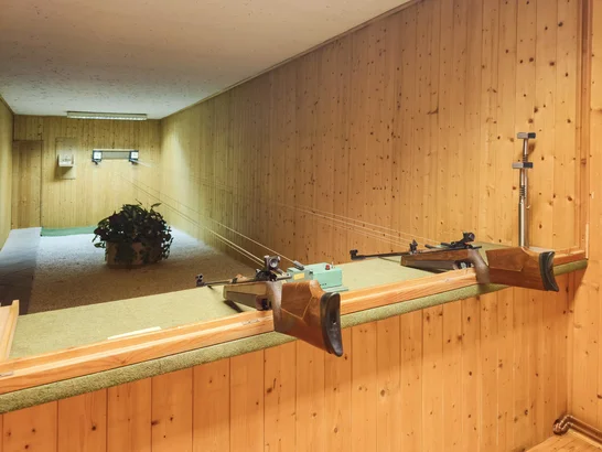 Im Obergeschoß stehen weitere Nutzflächen zur Verfügung, darunter eine Bar sowie ein Schießstand mit Sitzgelegenheiten, die das Raumangebot ergänzen und zusätzliche Nutzungsmöglichkeiten eröffnen.