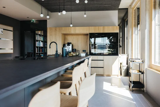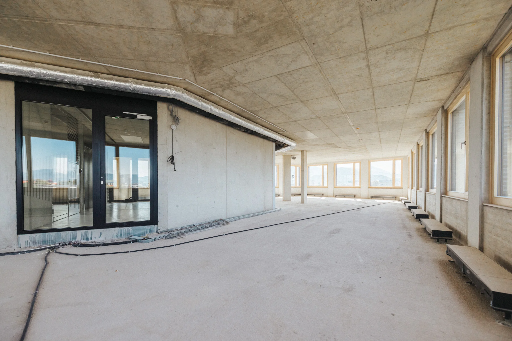 Die vollständig eingerichtete Büroeinheit für bis zu 10 Personen ermöglicht einen sofortigen Arbeitsbeginn. Ergänzend stehen hochwertige Gemeinschaftsbereiche wie Aufenthaltszone, Teeküche und ein modern ausgestatteter Besprechungsraum zur Verfügung. Die frequentierte Erdgeschosszone mit Gastronomie- und Fitnessangeboten bildet eine passende Ergänzung zu den Büroflächen in den oberen Geschossen. Die Öffnung der Altglan ermöglicht eine energieeffiziente Vollklimatisierung mit Bachwasserkühlung und Fernwärme.