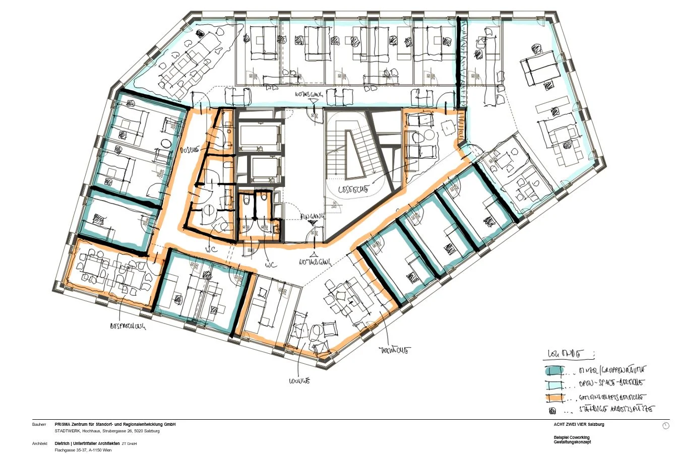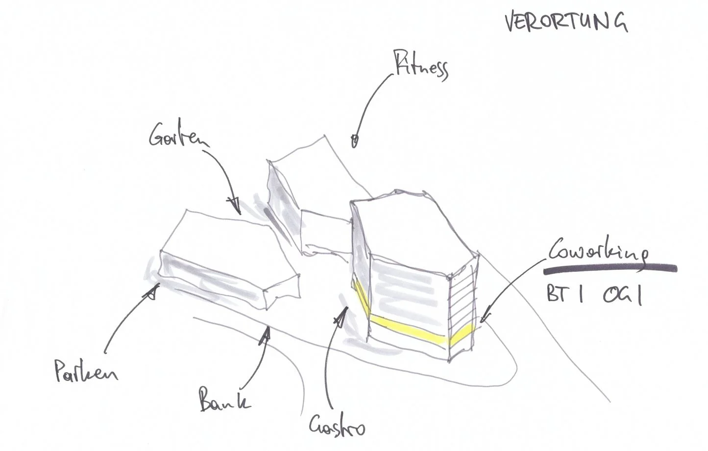 Das Coworking Angebot ist Teil eines entstehenden Nutzungskonzeptes, das eigenständige Arbeitsräume mit gemeinschaftlich genutzten Funktionen verbindet. Die Konzeption befindet sich aktuell in Entwicklung.